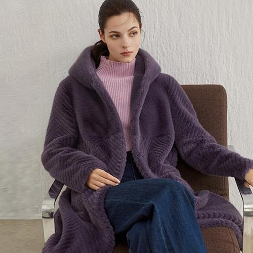 [엘루아][엘루아] VEGAN FAUX 밍크 후드 롱 코트_퍼플