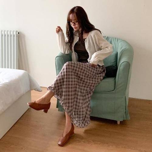 [다잇템]여성면혼방잔잔체크롱스커트레이스밑단A라인
