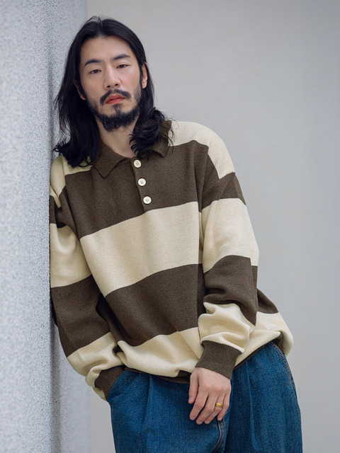 [러기드하우스] 스트라이프 카라 드롭 숄더 니트 2컬러