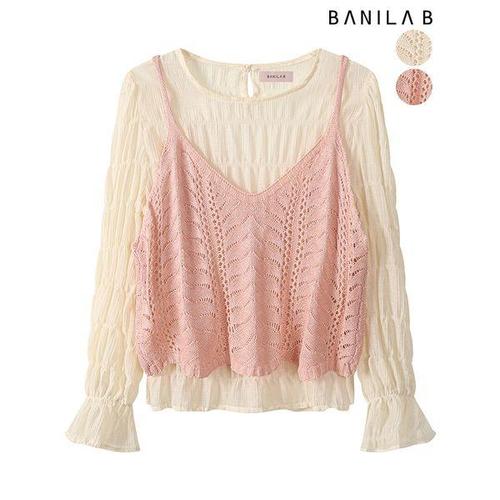 [바닐라비]펀칭 니트 뷔스티에 러플넥 블라우스 셋업