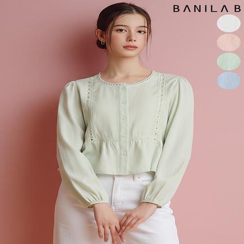 [바닐라비]여성 레이스테잎 벌룬소매 블라우스