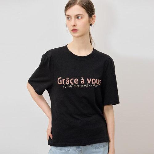[바닐라비]여성 루즈핏 레터링 라운드넥 반팔 티셔츠