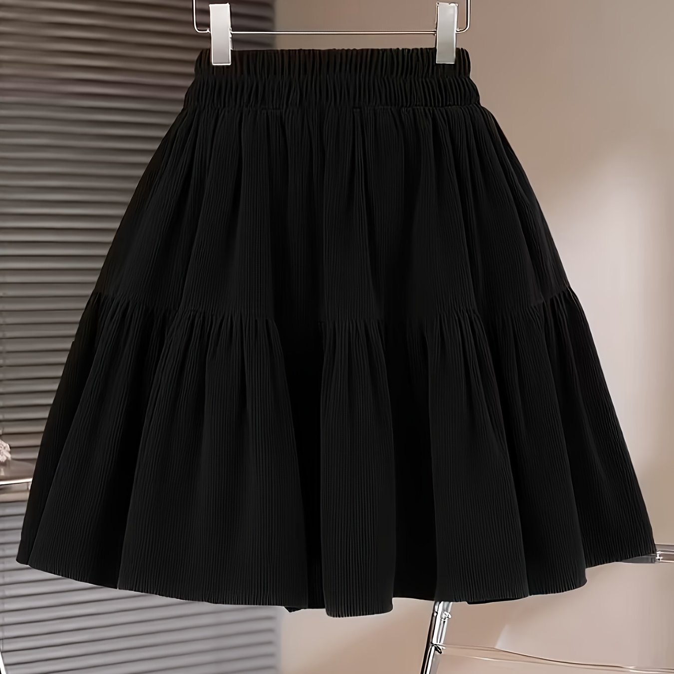 TEMU 플러스 사이즈, 플러스사이즈 여성용 레이어드 티어드 케이크 스커트, 코듀로이 두꺼운 텍스처 리브드 패널, 플리츠 패널 미니 스커트 봄 가을용