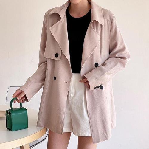 더블 트렌치 코트 숏 바바리 자켓 베이지 단추 간절기 소매포인트 여성