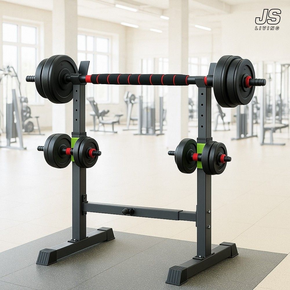 JS리빙 칼리번 바벨 거치대 높이조절 너비조절 홈트레이닝 역기 아령 정리대 다이어트 근육 운동 기구 블랙 바벨랙 아령 덤벨 원판 보관 바벨다이 @JSLV-0665412ADFDSAD