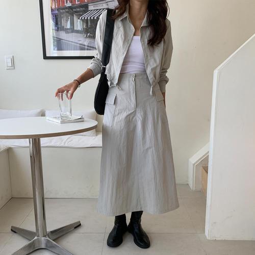 잇진 여성 심플 스트릿 바스락 바람막이 카고 롱 스커트 세트