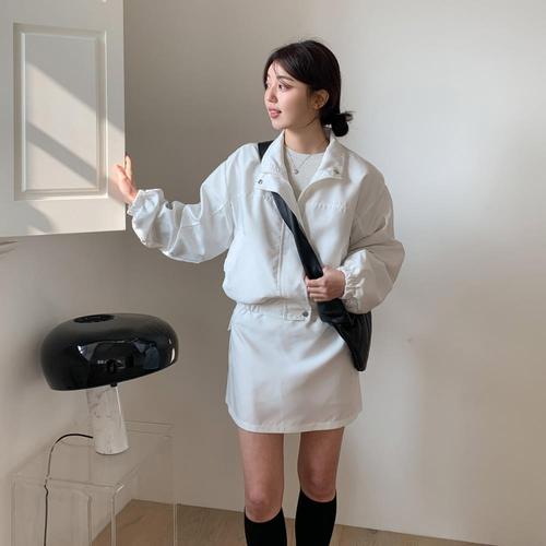 [다잇템]여자 바스락 크롭 스트링 바람막이 스커트 세트