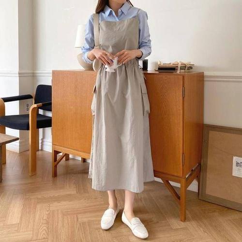 [다잇템]여자 봄 스트링 카고 바스락 끈나시 롱원피스