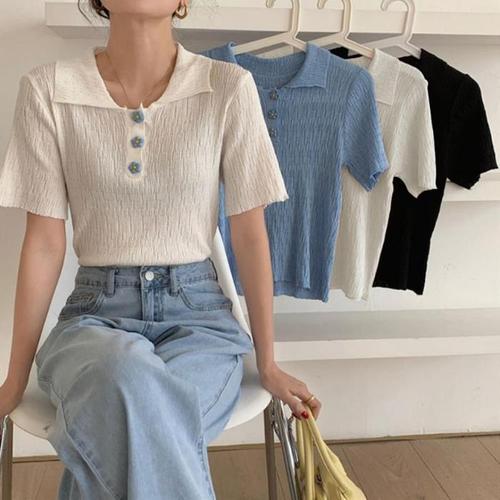 여자 여름 데일리 반팔 카라 니트 티셔츠
