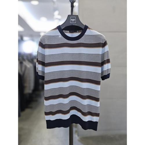 [바쏘옴므]그레이 스트라이프 반팔 카라 티셔츠 WSZ2KT45AGR_DG