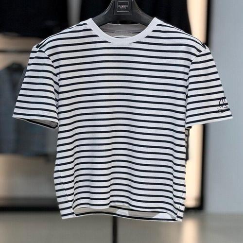 [ 바쏘 옴므 ] 25 S/S 이너 네이비 단가라 자수 포인트 COOL 시어서커 반팔 티셔츠2RK20ANY
