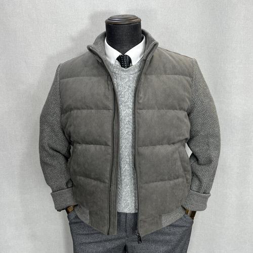 [바쏘옴므]자켓 구스다운 니트배색 스웨이드 점퍼 차콜 Z4UA12-2
