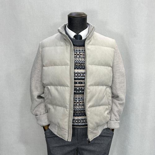 [바쏘옴므]자켓 구스다운 니트배색 스웨이드 점퍼 베이지 Z4UA11-2