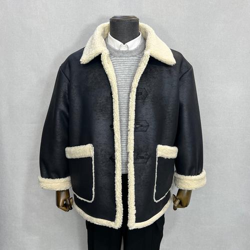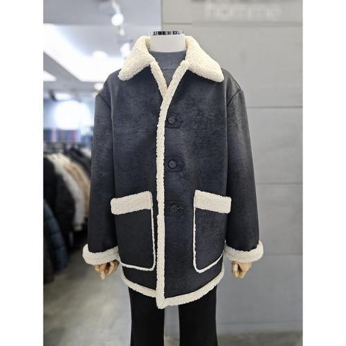 [바쏘옴므]FW 천연 양가죽 배색 오버핏 페이커 레더 무스탕 점퍼 블랙 Z4UA48-2