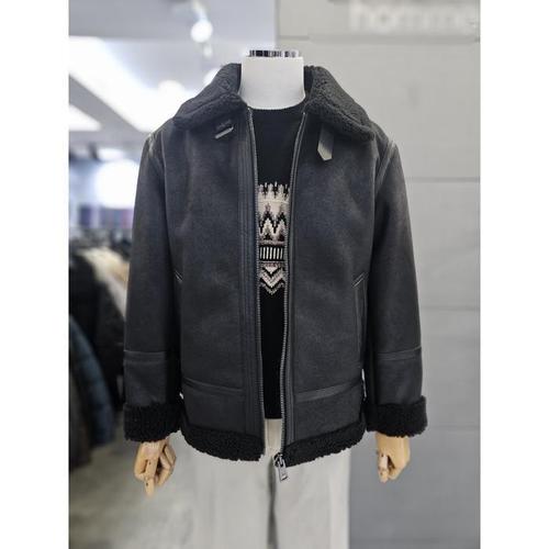 바쏘옴므 세이브존03 바쏘옴므 남자 블랙 양가죽 배색 무스탕 점퍼 WSATZ4UA47AG