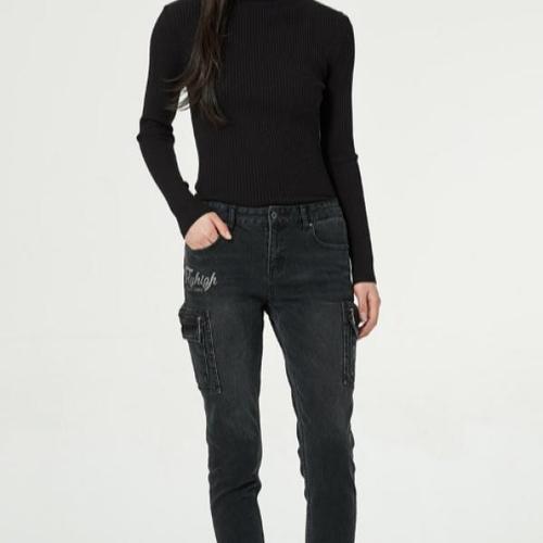 [잠뱅이]여자 프리미엄 블랙 카고 프린트 바이오스톤 올약 틴 워싱 기모 보이핏AN4DBF852_IC