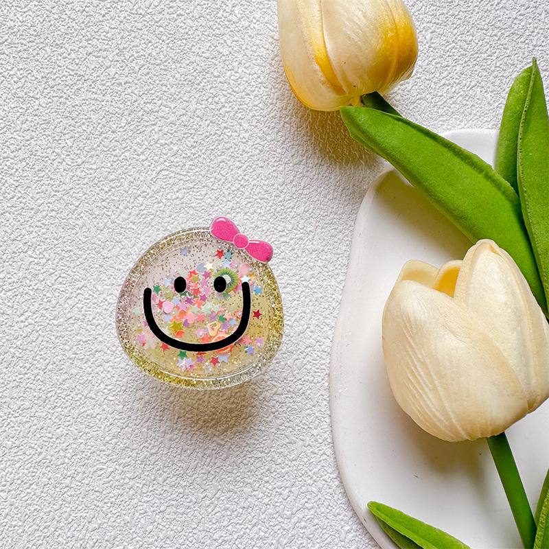 TEMU 즐거운 페이스 보타이 모래 폰 그립 스탠드! 에스테틱 파스텔 귀여운 접착식 홀더, 접이식 및 접이식 게으른 브래킷 영상 시청용. 매혹적인 글리터 모래 창의적인 모바일 액세서리, 생일 선물 및 일상 선물로 이상적