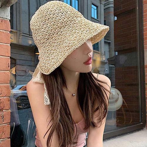 [골드스마일]여자 모자 리본 햇빛 챙 룩 바캉스 휴가 버킷 햇 코디
