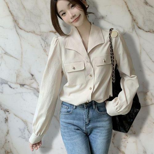 [신상오픈런]여성용 봄가을 캐주얼 카라 포켓 블라우스