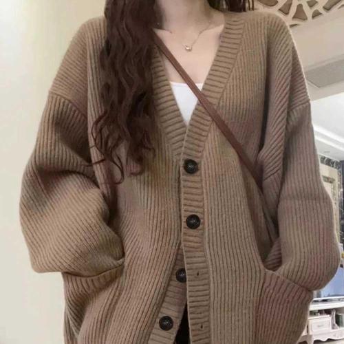 [신상오픈런]여성용 브이넥 울 가디건, 데일리 박스핏 보카시 스타일