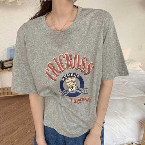 [에이치플러스몰]박스핏 인기 여성 프린팅 라운드넥 감성 면 반팔 티셔