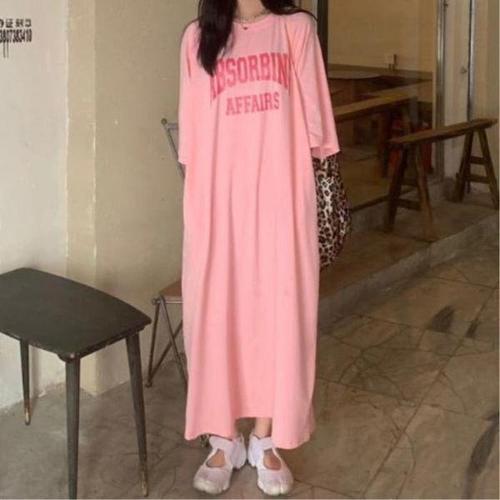 상상그이상 여성용 국내제작 간절기 베이스볼 원피스 빅사이즈 레터링 롱티셔츠 심플 포인트 사계절 면 데일리룩