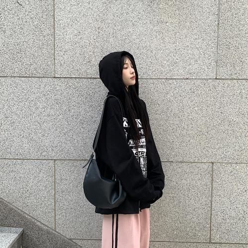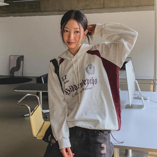 [옷자락]여자 박시 오버핏 사이드 배색 레터링 후드티