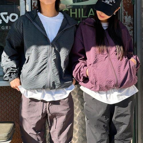 [옷자락]여자 체크 윈드집업 바람막이 하이넥 박시 후드 점퍼
