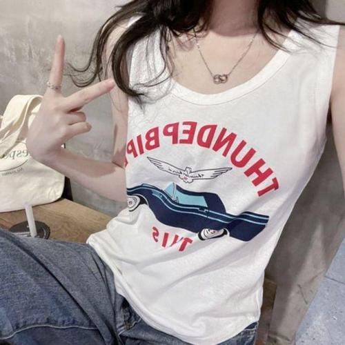 슬리브리스 여성반팔티 박시 그래픽 라운드 나시티 여 WD7DB14