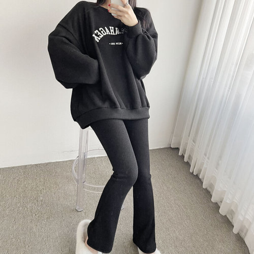 글램핏 / 니트 기모 세트 박시 프린팅 맨투맨+밴딩 부츠컷 팬츠