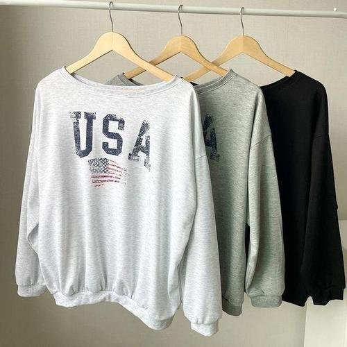 프린팅 트랜디 베이직 레터링 맨투맨 남성 티셔츠 심플 긴팔 따뜻한남자 프리스타일 레이어드 루즈핏 박시