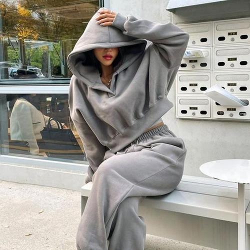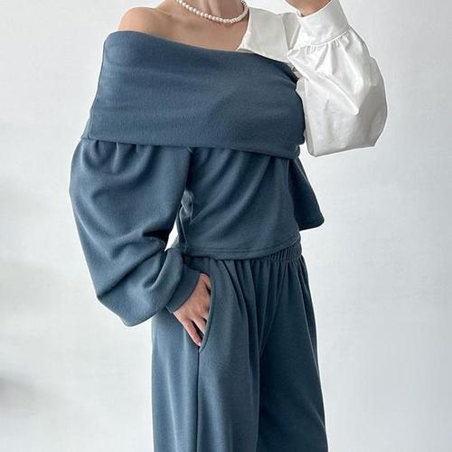 [다잇템]여자 박시 볼드숄더 통바지 크롭티 세트