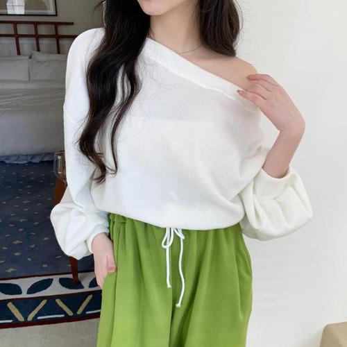 [시크블랙]아리쉔 박시 스트링 보트넥 크롭 긴팔 니트