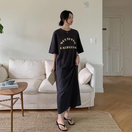 여성 데일리 여름 반팔 레터링 원피스 롱 캐주얼 (WFH9QKS)