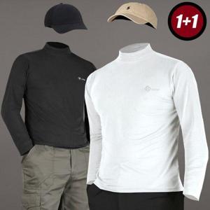 1+1 남성 기모 반폴라티 빅사이즈 남자 반목 이너 긴팔 티셔츠 2피스 가을 겨울 남성용 목폴라 티셔츠 CJJ