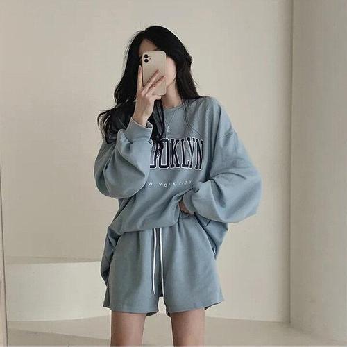 [굿쇼핑몰_의류]3컬러 여성 레터링 투피스 긴팔 반바지 셋업 롱티셔츠