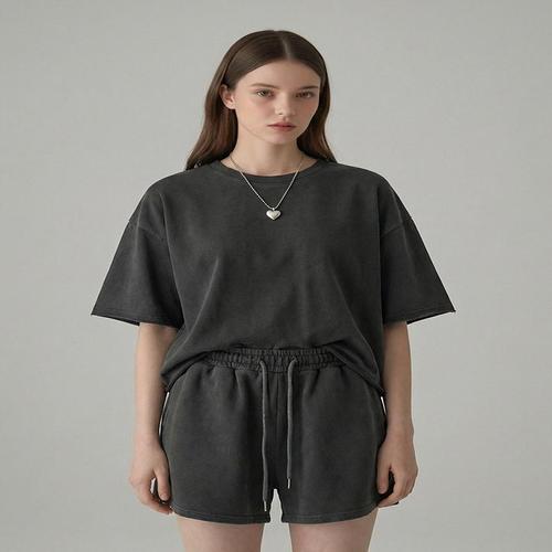 여자여름티 여성 여름 유니크 투피스 세트 반팔 반바지 셋업