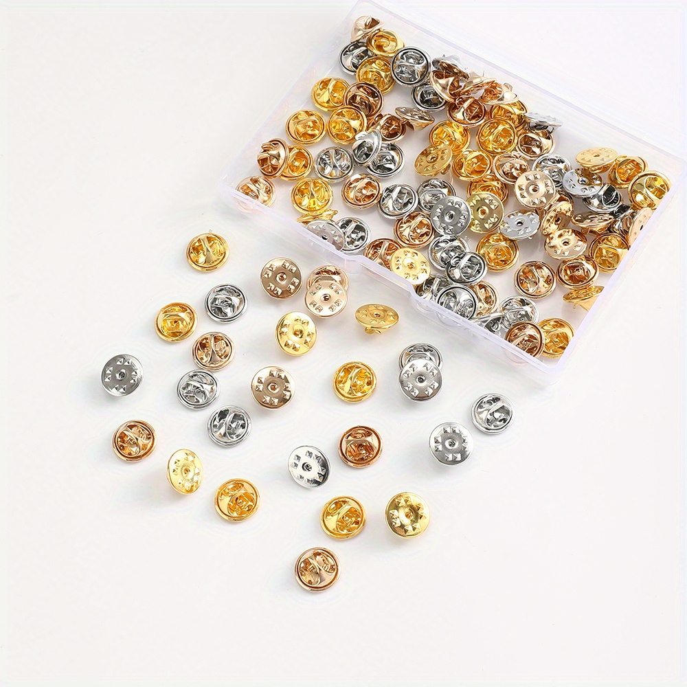 TEMU 100개/박스 1.15cm 골드 실버 메탈 잠금 핀 백 나비 클러치 배지 인사이그니아 네임 태그 대미츠 핀 백 교체용