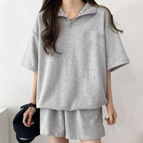 [에이치플러스몰]데일리 베이직 여성반팔반바지세트 캐주얼 반집업 올