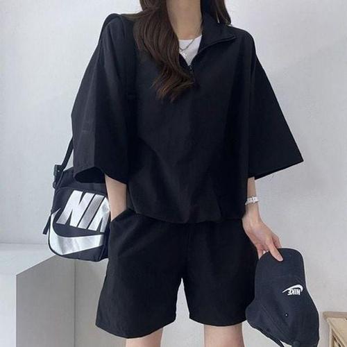 [에이치플러스몰]여름 베이직 여성반팔반바지세트 반집업 아노락 올데