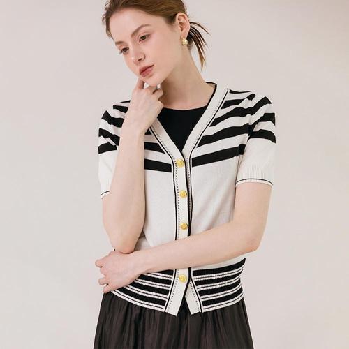 [막스까르띠지오]클래식 스트라이프 반팔 니트 가디건