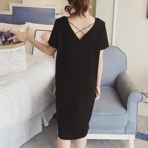 [엄지척]S81041 등 X 포인트 루즈 심플 반팔원피스 롱반팔_19869856_667501