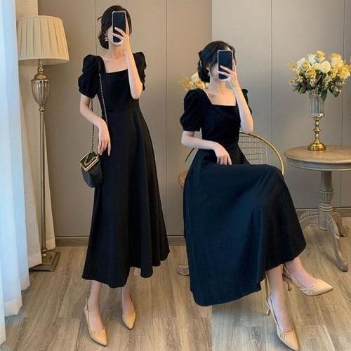 [엄지척]여자 퍼프 반팔 스퀘어넥 블랙 롱 원피스 하객룩_19871295_667501