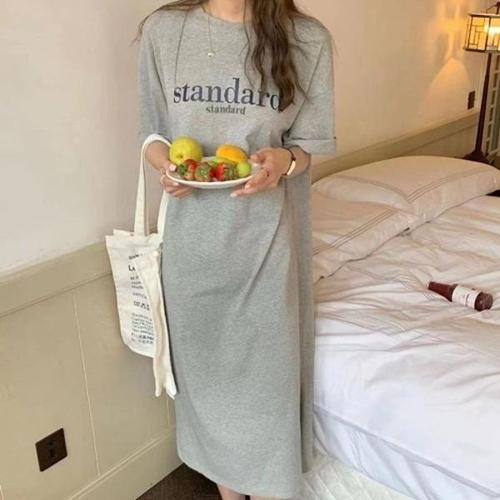 [엄지척]여성 데일리 레터링 반팔 롱 원피스 DHH-D68_19872348_667501
