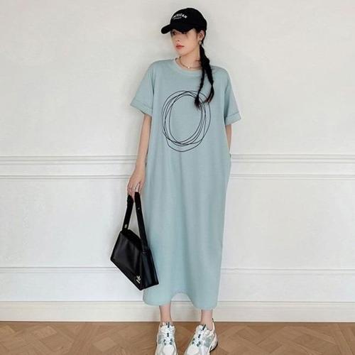 [엄지척]베이직 레터링 캐주얼반팔 롱 원피스 마실룩 68-D_19870890_667501