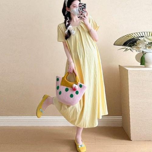 고품질 키밍 반팔 임산부 셔츠 원피스 빅사이즈 루즈핏 여름 만삭셔츠원피스 셔츠임산부원피스 (WA5F8E4)