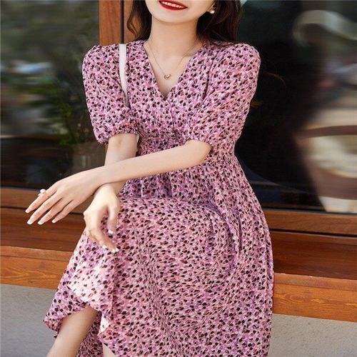TOPMOX 쉬폰 플라워 원피스 반팔 여신핏