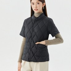 코카마니 여성 베이직 라운드넥 아웃 포켓 반팔 체크 누빔 조끼 자켓 투니보ZA-63