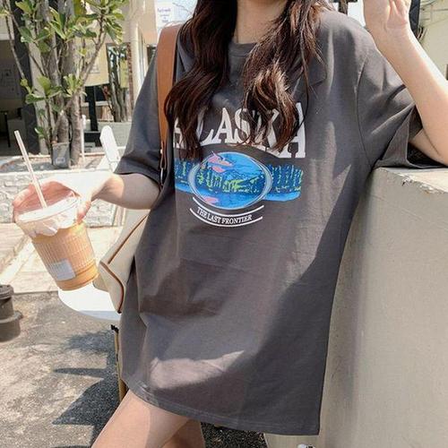 [에이치플러스몰]티셔츠 빈티지프린트 반팔티 박시핏 여자오버핏티