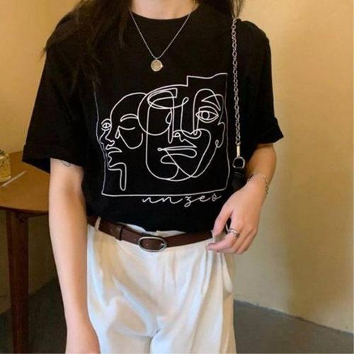 오스틱니 100kg까지 [1+1]초특가 여성 여름 빅사이즈 프린트 고질량 순면 루즈핏 반팔 티셔츠